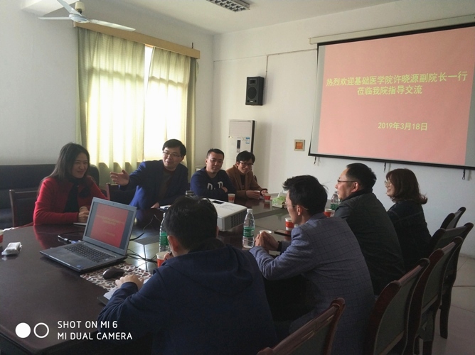 许晓源副院长向药生学院对基础医学院的支持与帮助表示感谢,希望今后继续多沟通、多学习,理顺本科生毕业论文工作,为新增预防医学本科专业学生培养打下坚实的基础。