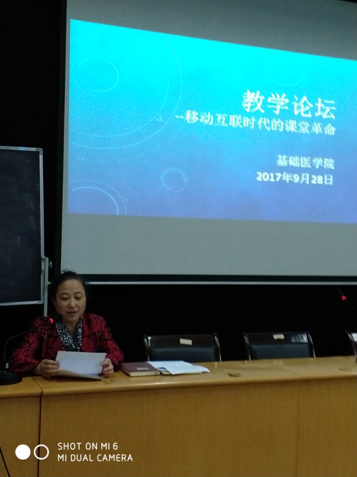 9月29日下午,在浔东校区管委会三楼会议室,基础医学院开展了本学期第一次教学论坛活动,主题为移动互联时代的教学革命,基础医学院领导、教师及蓝墨科技公司董事长靳新出席了会议,会议由郑美蓉副院长主持。