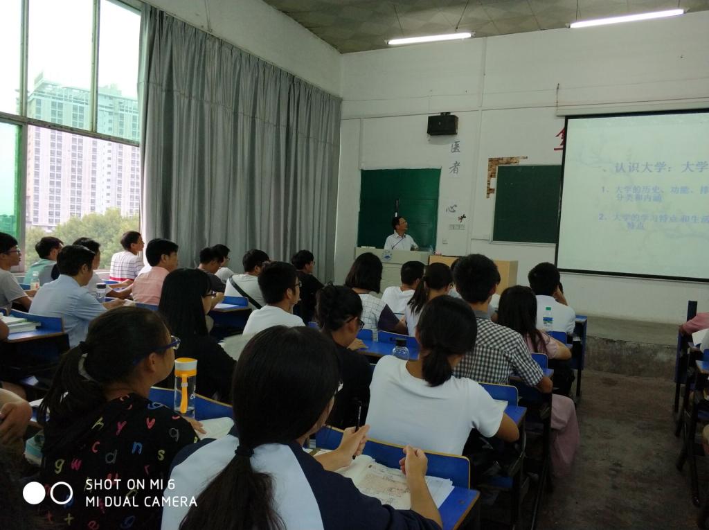 陈圣钢老师本节授课内容为《如何适应大学生活》,结合医学专业特点,利用视频课件,陈老师深入浅出地讲解了如何适应大学生活,如何做一名合格的大学生,在授课过程中,不时与学生互动交流。杨耀防副校长在听课过程中不时关注着学生动态,并认真做着听课记录。