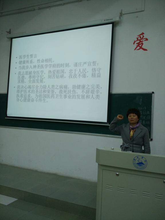 教学科研管理科的林玲老师给同学们介绍了学籍卡的填写,免修、补修课程的办理手续和相关注意事项,学生科和团委的老师也给同学们介绍了各职能科室和日常工作内容,最后由学生科何翠媛科长带领大家宣读了医学生誓言。
