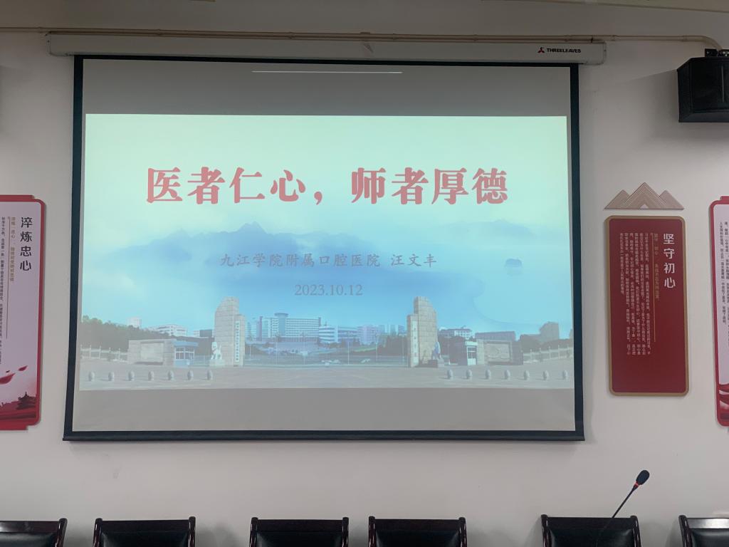 会上,汪文丰以“医者仁心、师者厚德”为题,宣讲了习近平总书记关于师德师风的重要论述、讲话、批示和指示精神,列举了全国医学领域知名专家的优秀事迹,同时分享了自已教学和临床实践。汪文丰从医从教30年来,始终践行者医者初心,在自己的岗位上兢兢业业、任劳任怨、默默耕耘。在临床工作中他勇于担当、带头创新;在教学工作中,他用崇高的师德温润着学生的心灵;在学科建设上,他倾注大量心血,注重骨干培养。他视同事如手足,视患者为亲友,在平凡岗位上,用真情、真心诠释着医者的仁心仁术,深受广大患者和行业同仁喜爱和认可。由于工作的出色,汪文丰先后被评为九江市“十佳优秀医师”和九江学院师德师风标兵。汪文丰的报告深深感染着与会的师生们