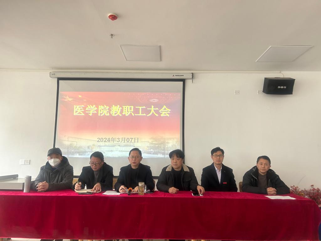 为进一步增强师生安全防范意识,,坚持不懈抓好师德警示教育,筑牢安全稳定防线。基础医学院于3月7日下午在学院办公楼635室召开教职工大会。全体教职工参加,会议由基础医学院党委书记许晓源主持。