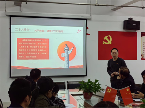许晓源以《守初心担使命九医心向党 二十大精神学习》为题,图文并茂地深度解读了党的二十大报告精神,并将报告中关于教育、健康卫生的金句摘录学习,以二十大精神指导学院中心工作。
