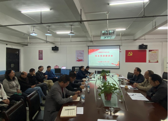 10月27日下午,基础医学院党委书记余朝阳在浔东校区华文楼105室主持召开民主党派教师代表座谈会,学院全体党委班子成员、各党支部书记以及学院6位民主党派教师代表参加了座谈会。