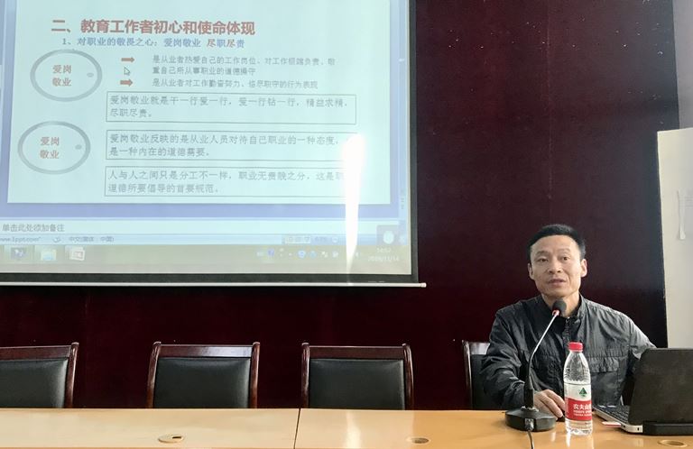余朝阳书记希望大家通过今天的学习,牢记习近平总书记的教诲:“三寸粉笔,三尺讲台系国运;一颗丹心,一生秉烛铸民魂!”大家要自觉把学习典型榜样与做好本职工作结合起来,不忘初心,爱岗敬业,立德树人,把教书育人和自我修养结合起来,做人民满意的好教师。各支部要结合党的十九届四中全会精神,继续加强主题教育,把各项工作不折不扣地落到实处。