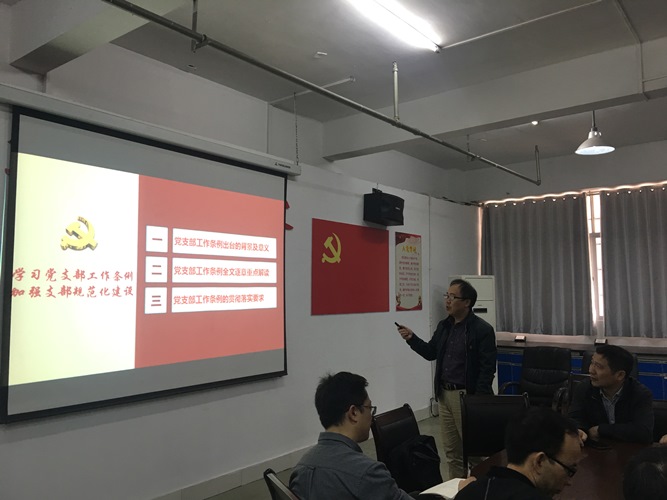 学院党委书记余朝阳同志做了《中国共产党支部工作条例(试行)》专题辅导。余朝阳同志分别从“党支部工作条例出台的背景及意义”、“党支部工作条例全文逐章重点解读”、“党支部工作条例的贯彻落实要求”等三个方面给全院党员做了详细解读,并强调党员干部要做《条例》的忠诚践行者,真学习、真研究、真践行,决不能说一套做一套、搞花拳绣腿、做表面文章,要逐条逐字逐句研究,真正学深悟透、融汇贯通,把握主要内容和精神实质,牢记在心上,落实在行动上,正确指导党支部标准化、规范化建设,确保《条例》各项规定要求落到实处。