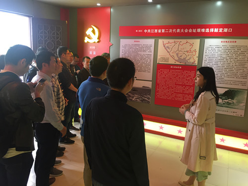 大家先后瞻仰了中共江西省第二次党代会的原址纪念馆和纪念塔,仔细聆听讲解员讲述我党早期艰苦奋斗的历史。在1928年反动武装猖狂的时候,与会代表不畏危险,在鄱阳湖边的偏远小村王燧村召开了中共江西省第二次党员代表大会,这是土地革命战争时期白区江西省委唯一的一次党代会,这次大会基本上贯彻了党的六大精神,解决了江西革命发展的一系列问题,选举了方志敏等新的一届省委执委,对江西省的革命武装工作意义重大。