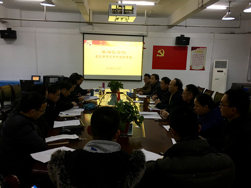 12月29日下午,基础医学院在浔东校区华文楼105会议室召开学院党支部书记年终述职考核会。基础医学院党委班子成员、各党支部书记、支部委员、专职组织员及师生代表20余人参加本次述职考评会,会议由院党委书记余朝阳同志主持。
