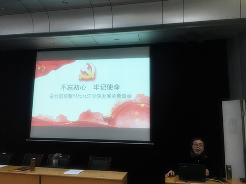 会上,学院党委书记余朝阳同志详细解读了九江学院党委赵伟书记在学校首届党代会上代表学校党委所作的《不忘初心 牢记使命 奋力谱写新时代九江学院发展的新篇章》的工作报告。报告以习近平新时代中国特色社会主义思想为指导,全面总结了学校党的十八大以来的工作成绩和经验,并提出了今后五年学校发展目标和总体思路,明确了学校今后五年的重点工作和主要措施,对坚持和加强党的领导,全面加强党的建设,充分发挥党委领导核心作用,深入推进全面从严治党,提升党建和思政工作科学化水平作出了系统部署。余书记指出,学校首届党代会是在学校改革发展进入关键时期召开的一次十分重要的大会,认真学习宣传和贯彻落实学校首届党代会精神,关系学校工作全局和长远发展,全院广大党员和师生员工要振奋精神,扎实工作,不忘初心,牢记使命,为建设特色鲜明区域领先的综合性应用型大学而努力奋斗!
