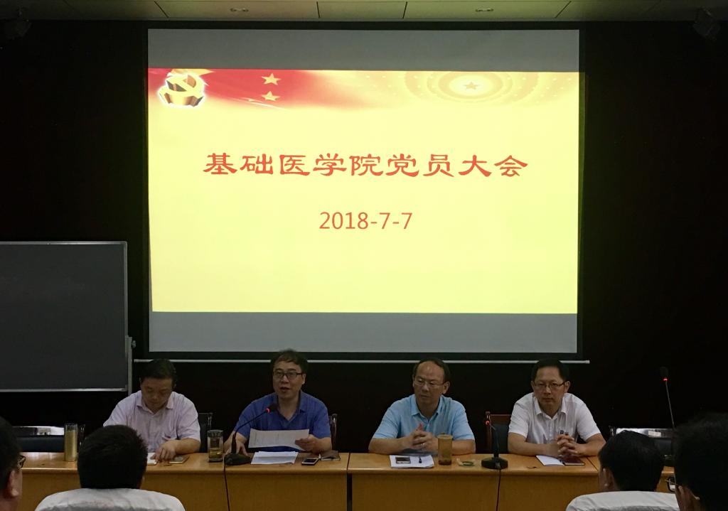 7月7日上午,基础医学院在立本楼报告厅召开学院全体党员大会,选举出席中国共产党九江学院第一次党代会代表。学院全体党员参加了会议。大会由党委书记余朝阳主持。