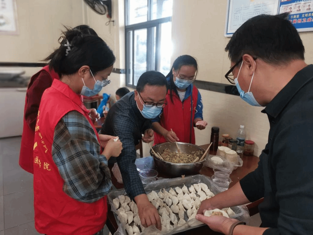 到了中午,志愿者们用自行购买的物资为老人家包了一顿充满爱心的饺子。
