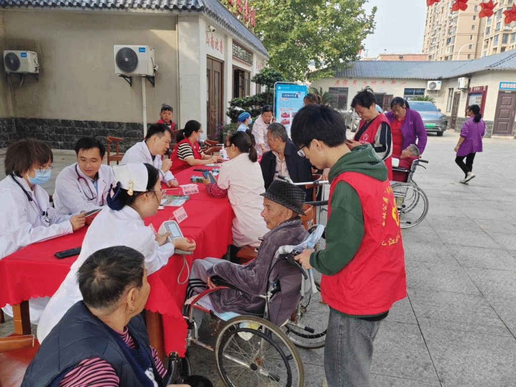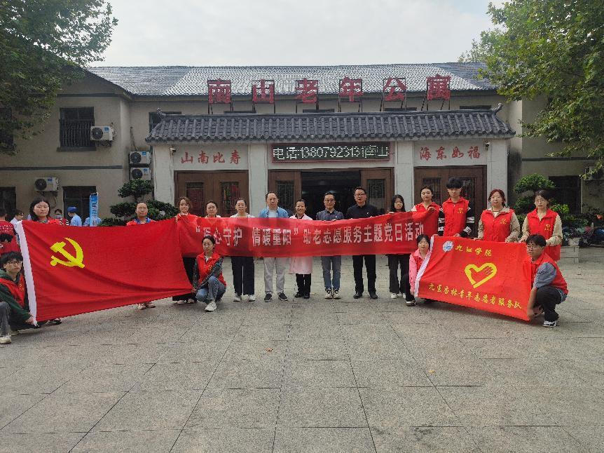 九九重阳,关爱浓浓。在重阳节到来之际,为营造尊老、敬老、爱老的社会氛围,打造文明助老新风尚,10月13日,九江学院基础医学院学生党支部联合九江学院第二附属医院、九江学院附属口腔医院、九江市第三人民医院、九江市义工联合会党支部,在九江市濂溪区南山老年公寓开展了“医心守护、情暖重阳”助老志愿服务主题党日活动,基础医学院院长许晓源、党委书记张辉、副书记刘频健参加活动。