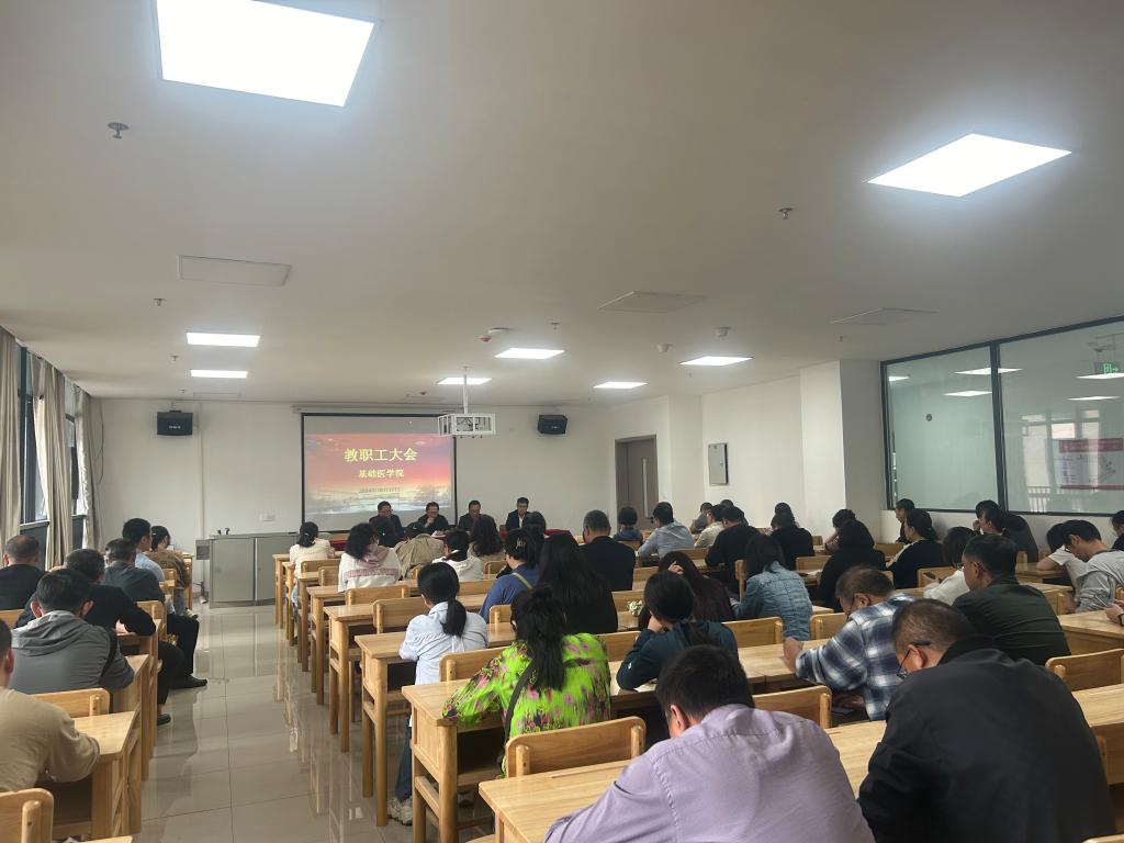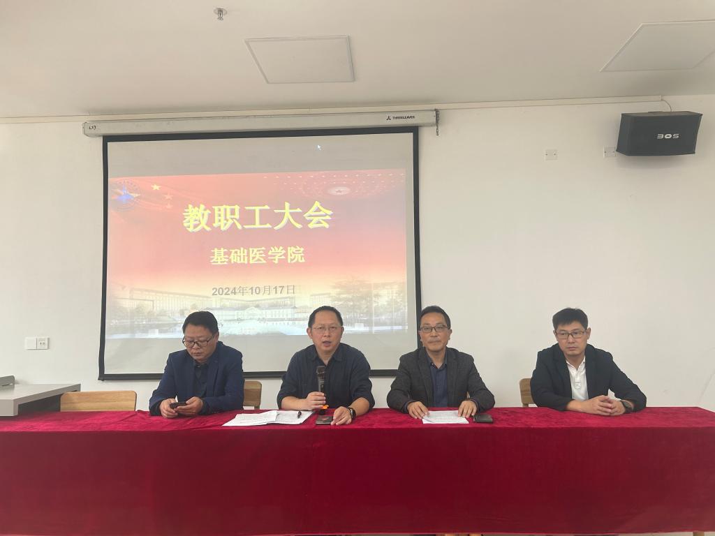为了让基础医学院全体教师更加全景式了解学校第二次党代会的盛况,更加精准地学习贯彻落实本次党代会的主要精神,自觉用学校第二次党代会精神统一全院意志和行动,凝心聚力谋发展,锐意进取开新局,10月17日基础医学院召开全体教职工大会,专题部署传达贯彻学校第二次党代会精神相关工作。会议由学院党委书记张辉主持。