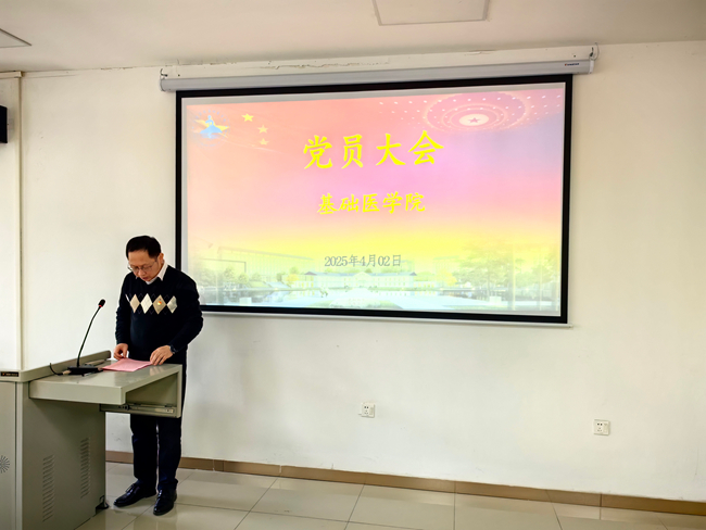 在教育部审核评估专家4月9日开始对我校进行正式评估前的极其关键时期,为深入贯彻落实学校迎接本科教育教学审核评估工作部署,充分发挥基础医学院各党支部战斗堡垒作用和党员先锋模范作用,动员和激励广大党员在迎评促建工作中勇争先、走在前、做表率,带头履职尽责,以最佳状态深入推进学院迎评工作。4月2日下午,基础医学院在635会议室隆重召开"党建引领促评估,我是党员勇争先"专项党建活动动员大会。学院党委书记张辉主持会议,领导班子全体成员及师生党员参加此次会议。