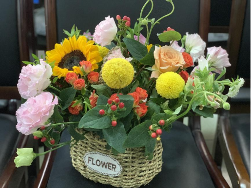 活动现场,由分工会主席方晓玲向参加花艺沙龙的男老师们介绍了花的名称和每朵花代表的花语和寓意,并示范插花作品的制作方法。大家在方晓玲的指导下,带着对父亲节美好的祝福,完成了插花作品。