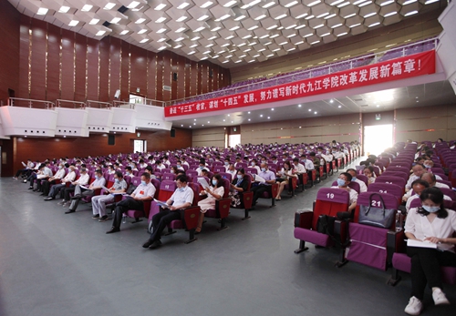校长刘晓东在会上作了题为《奋战“十三五”收官 谋划“十四五”发展努力谱写新时代九江学院改革发展新篇章》的工作报告。报告全面回顾了学校2019年的工作:主题教育扎实有效开展、省委巡视整改工作有序推进、全面从严治党持续深化、思想政治工作成效明显、文化育人卓有成效、本科教学工作审核评估整改扎实推进、人才培养质量持续提升、招生就业工作势头良好、校区教育资源整合稳步推进、申硕工作强力推进、高层次人才引进创历史新高、学科专业建设不断加强、科技与文化创新成绩喜人、社会服务能力显著提升、国际合作交流不断深化、管理体制机制深化创新、民主政治建设有新作为、校园民生建设持续改善、办学保障条件不断优化、后勤服务更加优质高效、校园环境更加美丽和谐稳定。