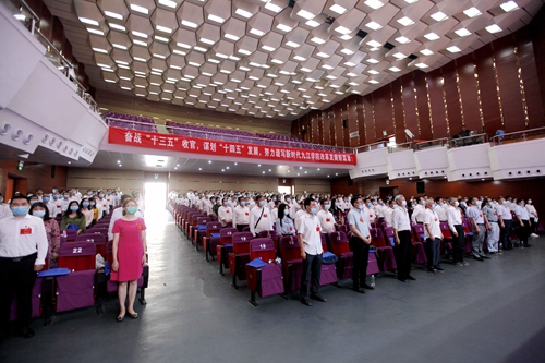 在圆满完成各项议程和预定任务后,九江学院第三届教职工代表大会暨工会会员代表大会第三次会议在全体代表合唱《歌唱祖国》的雄壮歌声中胜利闭幕。