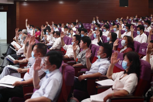 6月8日上午,九江学院第三届教职工代表大会暨工会会员代表大会第三次会议在主校区大礼堂隆重召开。大会的主题是:以习近平新时代中国特色社会主义思想为指导,凝心聚力再出发,砥砺奋进谱新篇,为建设特色鲜明区域领先的综合性应用型大学而努力奋斗。校领导赵伟、刘晓东、纪岗昌、王万山、陈春生、杨耀防、夏启国、查振华、李广欣、陈小林,校党委委员冯健、刘遵海在主席台前排就座,教代会和工代会正式代表、列席代表、特邀代表计近300人欢聚一堂,共绘学校建设发展的宏伟蓝图。校党委副书记魏立平主持会议。