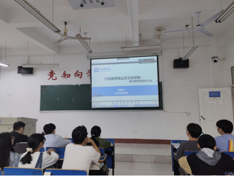 刘振中和鲍凌志分别从培养目标、招生对象、培养流程、就业去向、导师简介等方面详细介绍了本校公共卫生学院硕士研究生招生的基本情况,并针对报考流程、奖助学金体系、考研调剂等热点问题进行讲解。在交流环节,两位教授耐心详细的为同学们解答疑问,并诚挚地欢迎各位同学报考本校公共卫生学院硕士研究生。南昌大学、川北医学院校外硕导,我校预防医学教研室黄邵鑫博士为同学们就今年考研形式进行综合分析,建议同学们打牢基础、锁定范围、适当扩展,增强对自身考研择校的了解和认识。