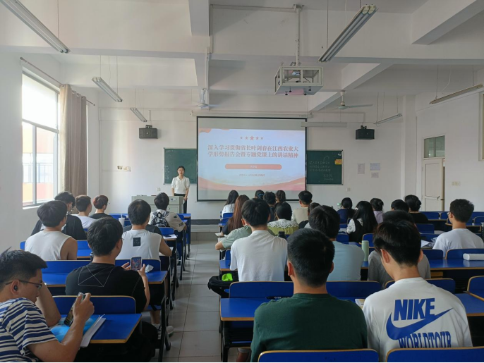 A2214班团支书在义丰楼401教室开展团日活动。团支书为同学们解读了省长叶建春在江西农业大学作形势报告暨专题党课上的重要讲话精神,用叶建春的话勉励在座的同学们从习近平新时代中国特色社会主义思想中汲取智慧和力量,从脚下的红土地吸收深厚养分,珍惜时代际遇,不负青春韶华,勇担责任使命,在新征程上书写无愧于时代、无愧于历史、无愧于人民的璀璨人生华章。
