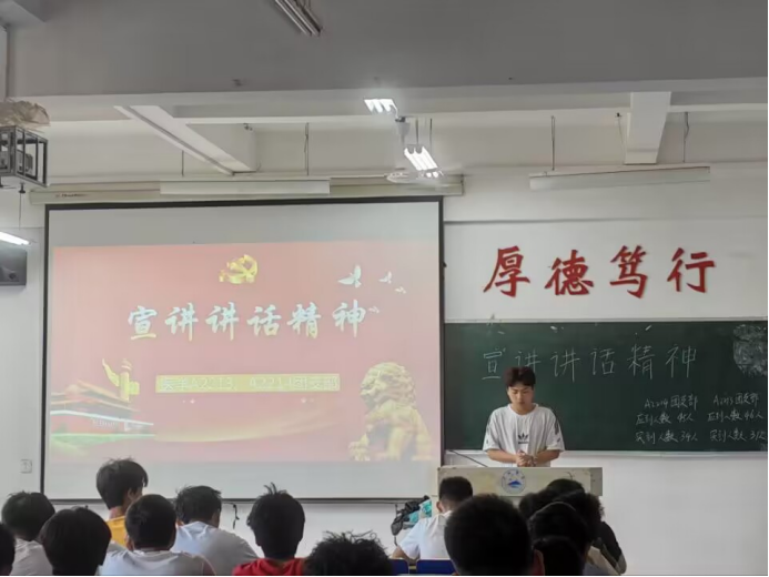 A2243班在香远楼604教室开展团日活动,团支书从青年角度向同学们讲述该精神,激励同学们要有坚定的理想信念。能够担当民族复兴大任的时代新人,需要有崇高的理想、坚定的信念,在新时代新征程中不断增强中国特色社会主义道路自信、理论自信、制度自信、文化自信。