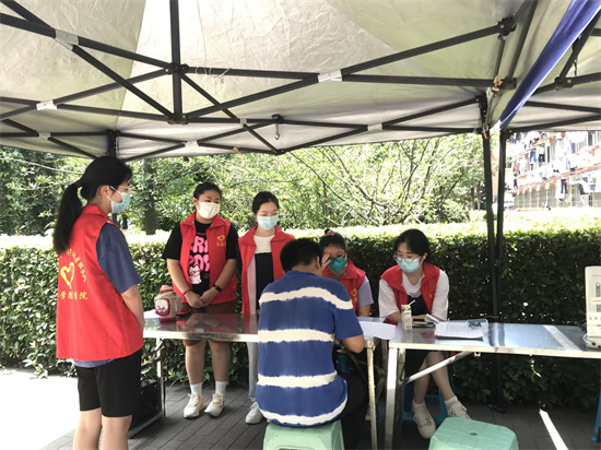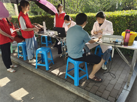 此次活动参与人员众多,但在血站医生的精心指导和志愿者的暖心服务下,各项工作有条不紊地开展。活动第一天,虽烈日当空,但前来献血的同学依旧不在少数。早上9:40左右,已经有献血者在等候,可见医学院学生对于公益事业的热情之高。在医学生志愿者们的组织下,献血者们依次进行了领表登记、血型测定、抽血和观察休息,在这过程中志愿者们配合工作人员,耐心解答同学们的问题并缓解同学们的紧张情绪。献血结束后由血站工作人员为献血者打印献血证并配发小礼品。每一位献血者脸上都洋溢着开心的笑容,因为他们的无私奉献会使更多患者得到救助。在工作人员和志愿者的讲解和鼓励下,不少同学也克服恐惧,积极参与献血。