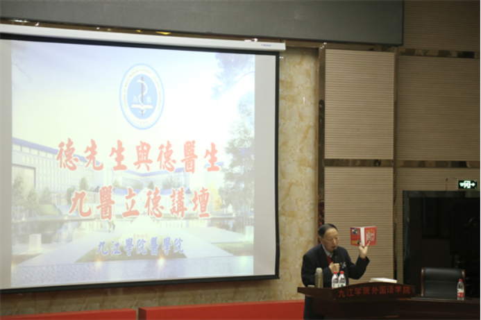 为了进一步加强医学生的思想政治教育深化学院学风建设,培养高素质医学人才。3月14日晚19点,医学院于香远楼三楼报告厅举行了三亿平台第十二期“德先生与德医生”——九医立德讲坛本次讲坛邀请九江学院退休教授、九江市关工委报告团副团长陈忠作为主讲人,主题是“我的读书故事”,医学院院长车向新党委书记许晓源300名师生代表聆听了本次讲座会议由医学院党委副书记刘频健主持。