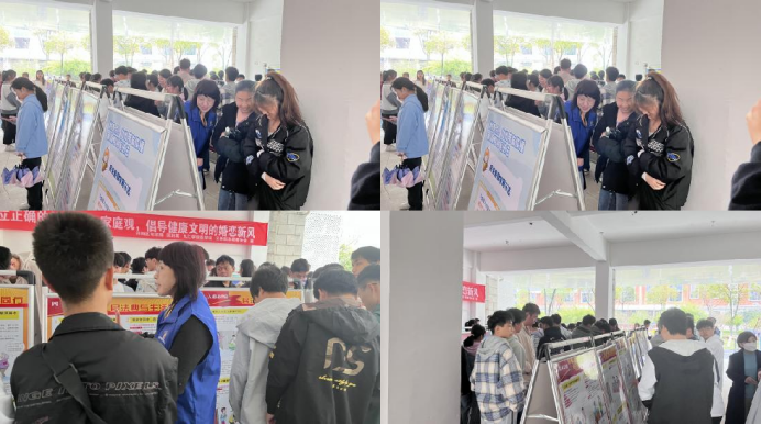 讲座于9时30分正式开始。袁毓明从对恋爱的看法切入,详细地讲解了恋爱、婚姻与性三者之间的关系,并且教导同学们如何培养在婚姻中的责任心。语言生动,情绪充沛,在她的引导下,同学们明白要想树立正确的婚姻观,首先要有一个婚姻方面的具体构想,需要去明确自己的另一半是如何的标准,并且做好自己的婚恋规划,而不是盲目的去谈恋爱去冲动的结婚,本着谨慎负责的态度来选择自己的另一半营造好自己的家庭才是正确的婚姻观。同学们也在讲座中积极提问,发表自己对于恋爱婚姻的观点看法,袁毓明也和同学们一同深入讨论。最后讲座同学们有序前往义丰楼一楼大厅观看展报,并以大家一同合影留念落下帷幕。