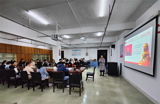 活动中,樊云燕从中国共产党发展史、中华民族发展史、世界文明发展史三方面向同学们介绍了党的二十大胜利召开的重大意义。她还向各位学生干部们介绍了党的二十大具体精神内涵,中国共产党的中心任务,中国现代化的含义等,并结合学生干部的职责将党的二十大精神更加生动形象地讲授给在座的各位同学。樊云燕强调,学生干部要发挥好带头和桥梁作用,带动学生共同学习宣传贯彻党的二十大精神,坚定不移听党话跟党走。在场的学生干部们认真聆听老师对党的二十大的专业解读,也对党的二十大精神有了更深刻的心得体会。大家纷纷表示会将党的二十大精神融入自己的日常学习生活中,踔厉奋发,不忘初心,牢记使命。