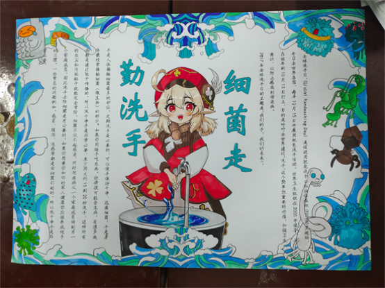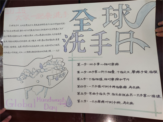 10月15日全球洗手日呼吁大学生关注手部健康,养成用肥皂勤洗手的好习惯,向更多人传递“用肥皂或洗手液洗手可以拯救生命”这一重要信息,促使公众改善卫生健康行为,降低感染疾病的风险,医友社和校园文明生活服务中心的组织下,医学院于10月15日至23日举办“关爱 生命 ,‘手’住健康”系列主题活动,活动形式为制作宣传手抄报和和拍摄宣传视频。