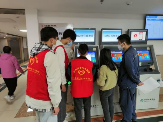 为了改善患者就医体验,传递医院人文关怀,培养医学生的职业认同感,塑造全面的人文精神,医学院“九医杏林”青年志愿者服务队于近期在九江学院附属医院开展了定点门诊“导诊”志愿服务活动。