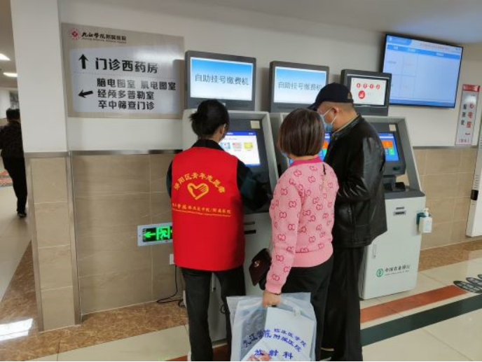 根据医院的志愿者需求,医学院根据同学们的课余时间,定时定点合理安排志愿者前往医院开展志愿服务活动。活动开展前,志愿者们进行了统一的门诊服务志愿工作培训,增强了对工作环境的熟悉程度,保障了面对患者时的服务水平。活动中,同学们在门诊一楼学雷锋志愿服务站签到,统一穿着志愿者红马甲,在门诊各区帮助患者指认相关科室的位置,协助患者使用自助机器。面对每一位寻求帮助的患者,志愿者们皆以饱满的热情和充足的耐心来接待并解答,力求以自己最佳的服务态度为患者带来更好的就医体验。在每一位来院患者的问题被解决后,志愿者们对医院的导医服务有了进一步的了解,在服务他人、服务社会的同时,自身专业素养也得到了发展与提高。