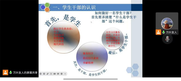 各学生部门分别采取线上+线下的方式,以“如何成为一名优秀的学生干部”为题,对部门成员进行了培训。