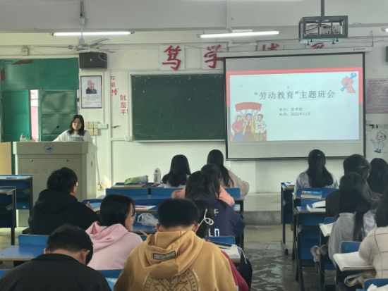 为了宣传新时代劳动精神、强化同学们的劳动意识与责任、弘扬劳动正能量和劳动文化,鼓励同学们积极主动参与到劳动中去,医学院于十一月上旬积极开展“劳动教育”主题班会。本次班会由各班劳动委员负责组织学生在本班固定教室开展。