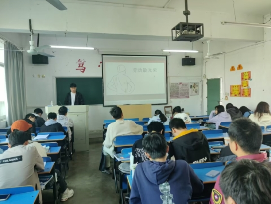 在班会课上,各班劳动委员首先介绍了劳动的意义与价值,让同学们更加充分地了解了在大学生活中劳动的重要性,紧接着进一步阐述了中国特色社会主义教育制度的重要内容使各位同学们的劳动价值取向得到更好的引导之后劳动委员还播放了提前准备好的幻灯片让同学们理解了“劳动教育”课程的内涵:对学生进行热爱教育劳动、热爱劳动人民的教育活动。在轻松、愉快的氛围下劳动委员带领同学们对劳动教育进行体验和感悟,引导同学们感受劳动的艰辛和收获的快乐。在这次班会的末尾,劳动委员还播放了关于“劳动最光荣”的视频,激发了同学们对劳动教育课程的兴趣;劳动委员介绍了“罗升、周建 ……”一系列全国劳动模范,让同学们感受到了榜样的力量。