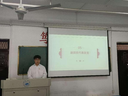 全体成员在团委学生第一副书记沙雪璐的带领下宣读了入团誓词。举起右手,体现了宣誓者的决心和信心。大声宣誓,展现了宣誓者们入团的坚定与自豪。誓言如山,铿锵有力。新团员代表潜朋讲到:“团员应以身作则,在同学们面前起到表率作用;勇当先锋、积极奉献,发挥主力军和突击队的作用。”接着由老团员代表杨静同学发言。她认为:“作为一个团员,不只是同学们的先进代表,不只是参加团活动,更不只是代表你一个人。因为在每一个团员身上,都肩负着为团组织做贡献的神圣义务。”之后她还分享了习近平总书记庆祝建团100周年重要讲话精神心得体会。
