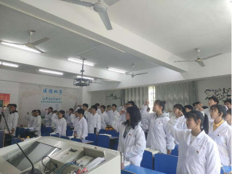 在宣誓中坚定理想信念:5月4日,医学院组织学生积极开展了入团宣誓和医学生宣誓活动。在入团誓词中重温青年团员为共产主义事业奋斗的责任使命,在医学生誓言中感悟守护人民健康的初心使命,激励着青年医者始终要坚定理想信念,医心向党,建工新时代。