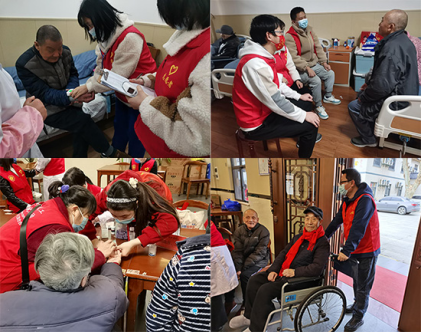 青年志愿者们分工合作,任务明确。一部分志愿者上门一间间房为老人测体温、量血压,询问身体状况,进行日常健康监测;一部分志愿者陪老人聊天、帮老人按摩,有位老爷爷激动地说,“我一眼就认出来你们了,希望你们以后能常来”。“我们会经常来的,多陪您聊聊天”,之前来过的志愿者回答到。还有志愿者协助附属医院专家开展义诊活动,为老人家量血压、测血糖、维持秩序、推送老人就医。