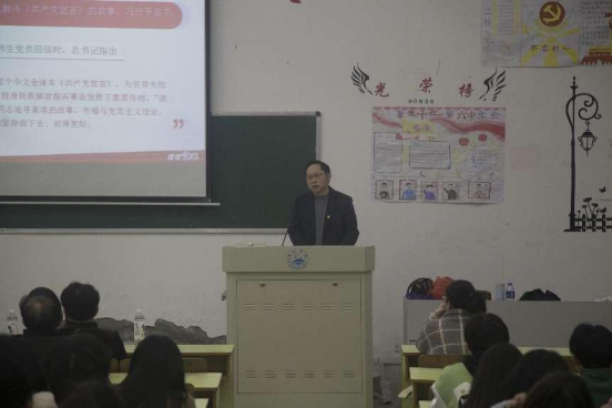 接着,由党委书记许晓源为大家讲授党课《讲好红色故事》。他详细讲解了讲好红色故事的重要性和如何讲好红色故事。他说到,同学们应当向革命先行者学习,汲取他们忘我、坚韧不拔、顽强拼搏的精神,认真学习党史,讲好中华民族故事,讲好中国共产党故事,讲好中国特色社会主义故事,讲好改革开放故事,深刻理解党的初心使命。