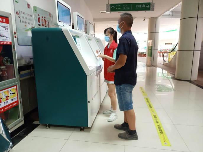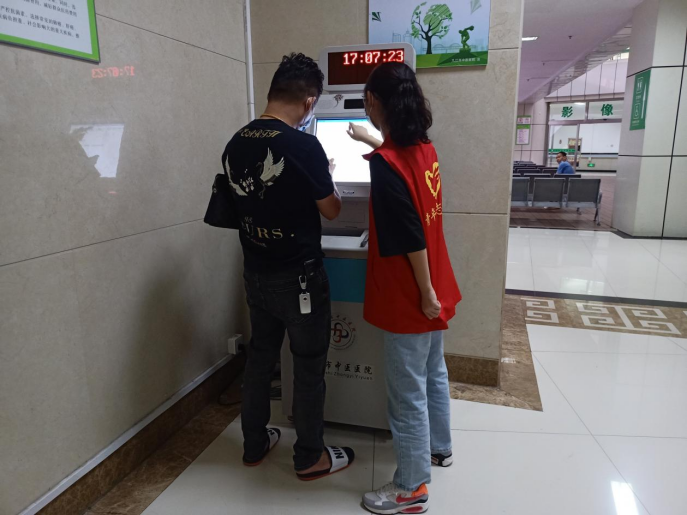 活动前期,活动负责人告知各班组织委员活动的基本内容和要求,并传达给班级同学。同学们都积极报名,踊跃参与。活动当天,志愿者们集体前往医院,并进行分工合作。志愿服务内容主要包括志愿者们在自动服务机前帮助他人进行挂号、缴费等一系列就医操作,维持医院安静的氛围以及良好的秩序。在整个活动过程中,如何准确快速的分配支援力量,提高工作效率考验着志愿者们。在反复熟悉流程中,志愿者对工作愈发顺畅。活动结束后,许多志愿者纷纷表示看似简单的工作,实际行动起来并没有那么容易,必须要以充足的耐心和细心去应对工作中的许多细节。