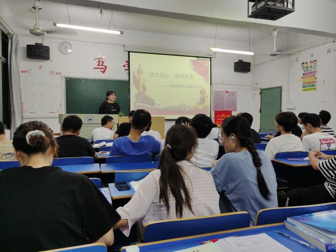9月8日晚,各班团支书分别组织班级同学开展了此次主题团日活动。在华文楼202,A2031班团支书首先以PPT形式向同学们讲述了建党一百周年的艰辛历程,带领大家回忆那段艰难而光荣的岁月,随后跟大家一起学习了习近平总书记“七一”重要讲话精神,强调未来属于青年。最后全班起立齐声宣誓:“请党放心,强国有我”。