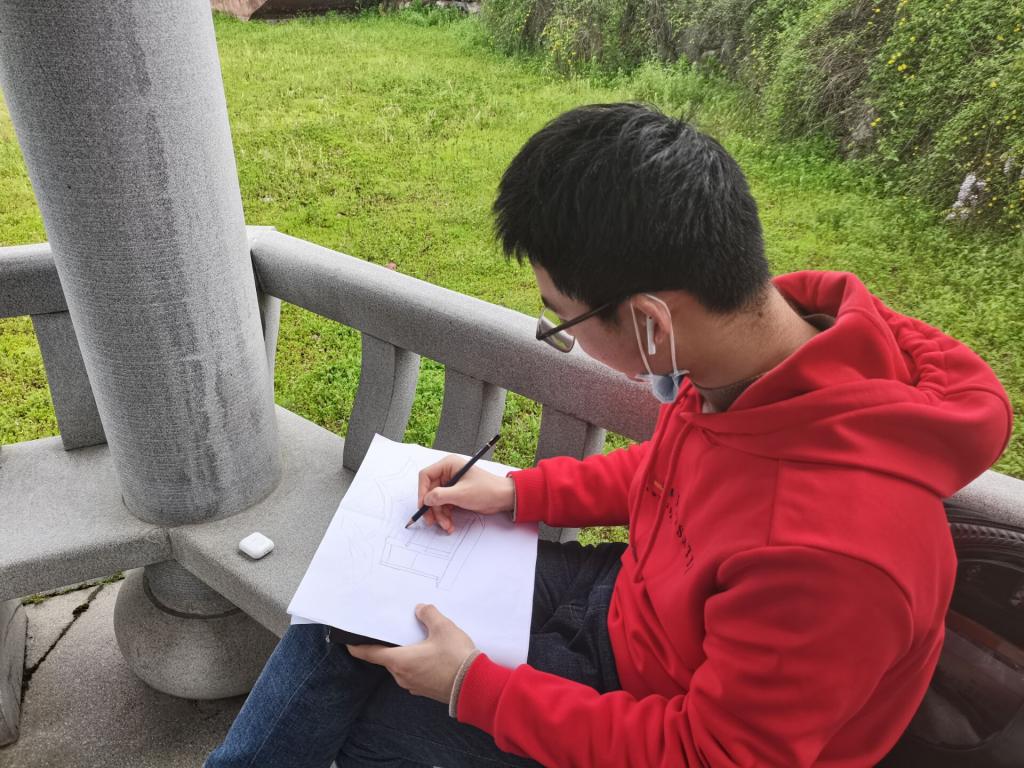 27日下午三点,伴着连绵细雨,成员们乘车抵达琵琶亭,一同领略古朴清雅的廊亭飞檐,画廊雕柱。初春生意盎然,绿意覆盖大地,百花争奇斗艳,面对恣意勃发的生命气息,成员们不时驻足感慨。短暂游览过后,成员们选了一处最佳角度,取出画纸画笔细细勾勒出琵琶亭的轮廓。写生途中成员们聚在一起相互讨论。活动最后,社长进行总结点评,写生活动到此圆满结束。