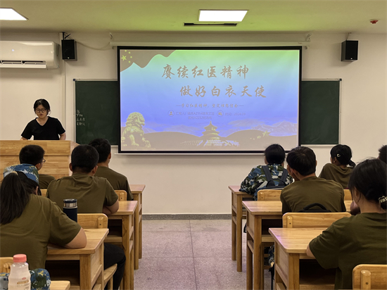临床医学院A2232班汤纯则结合九医的办学历史,向同学们讲述了“红医精神”。她呼吁同学们在未来的医学学习中,将“红医精神”内化于心,外化于行,不忘初心,砥砺前行,不负时代的重托。