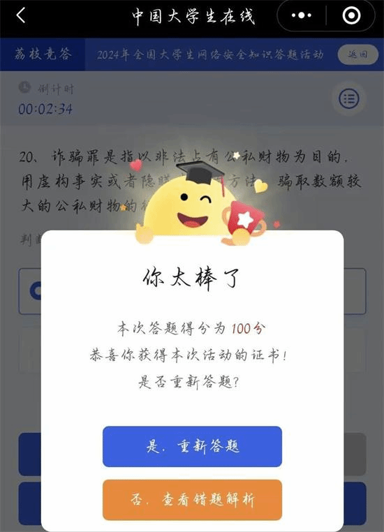 组织新生参与“守护青春,网络有你”全国大学生网络安全知识答题活动,向新生普及防范网络诈骗、安全使用网络等知识,撕开网络诈骗的伪装,进一步加深同学们的网络安全意识和自我保护能力。