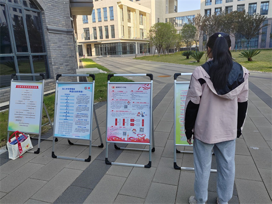 活动伊始,在相关工作人员的指导下,九医杏林青年志愿者向前来咨询的同学们分发了器官捐献宣传手册,并在会场周围布置了引人注目的宣传展板。这些资料和展板详细讲解了关于器官捐献的基本知识,帮助同学们进一步理解了器官捐献这一医学爱心活动。