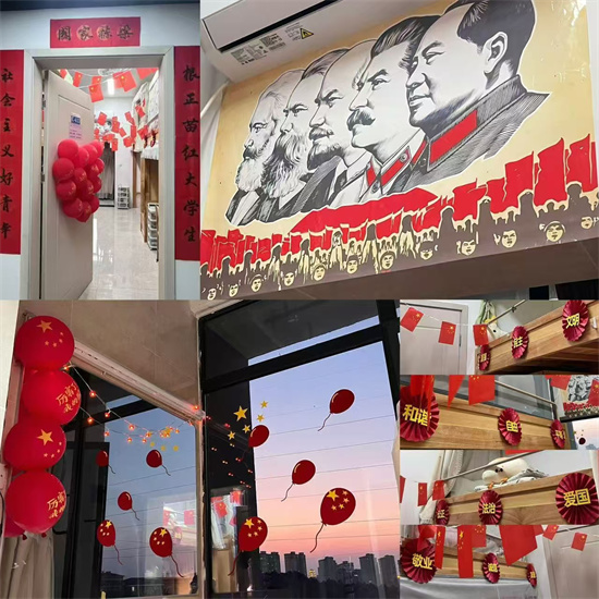 同学们发挥创意,使用各种环保材料积极参与到寝室设计中。有的寝室用小红旗点缀,彰显爱国情怀;有的寝室利用废纸折叠出好看的图案悬挂在墙壁上,既美观又环保……。在最后的评选阶段,评委们分别在寝室卫生洁净、内务整理、安全用电和美化设计四个方面进行了打分,最后有14间女寝,10间男寝在此次寝室文化节获奖。
