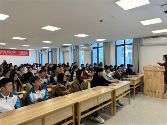 随后,陈建青结合同学们的实际情况,重点讲解了在学习、生活中可能遇到的法律问题。讲座过程中,同学们全神贯注,积极与陈建青律师互动,现场气氛活跃。
