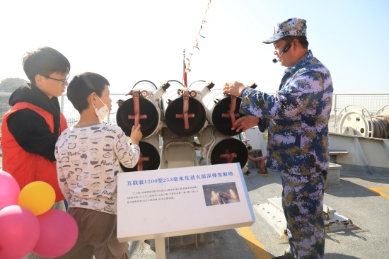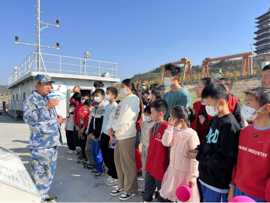 上午十一点整,志愿者们从九江学院出发前往湖口市博物馆与“橙光宝贝”们汇合共进午餐。午饭后,志愿者陪同小朋友们一同参观九江舰爱国主义教育活动基地。一位在九江舰上坚守36年的老兵为大家详细介绍了九江舰的构造、历史战绩和相关军事知识。他深情地对小朋友们讲到,“我国军事的强大,才有我们祖国的强大;我们今天幸福的生活来之不易,希望大家铭记历史,好好学习,报效祖国。”这一堂生动的爱国主义教育实践课在孩子们心中埋下了深厚的爱国种子,培养了他们的爱国主义情怀。