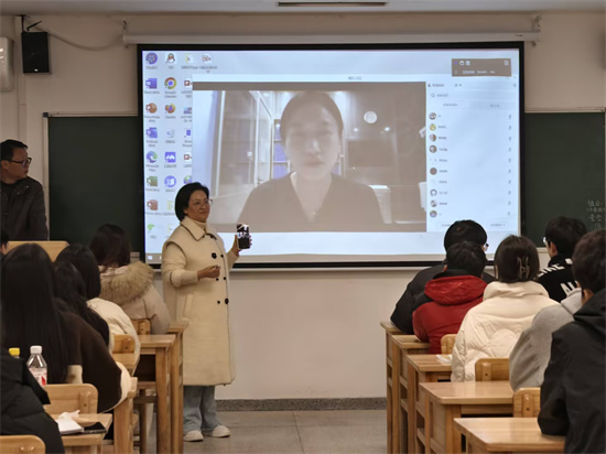 紧接着,杜静也通过分享求学经历向同学们传授经验。她分享了自己初到异国时遇到的挑战,尽管面临重重困难,杜静没有放弃,通过不懈的努力和自我提升,逐渐适应并克服了挑战,最终变得更加优秀。她向同学们强调了适应新环境的重要性,并鼓励同学们在面对困难时保持积极的心态,勇于接受挑战,不断学习和成长。杜静的经历和建议为在场的同学们提供了宝贵的启示,让他们认识到在追求职业发展的道路上,坚持和努力是实现梦想的关键。