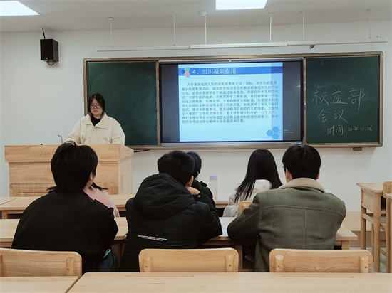 会议伊始,樊云燕首先对“如何做好一名学生干部”进行了深入的阐述。她通过PPT演示,详细解读了学生干部的角色认知、作用、应具备的素质以及意识等多个方面;强调学生干部作为学生中的优秀代表,不仅要在学习上做表率,更要在服务集体中发挥模范带头作用。